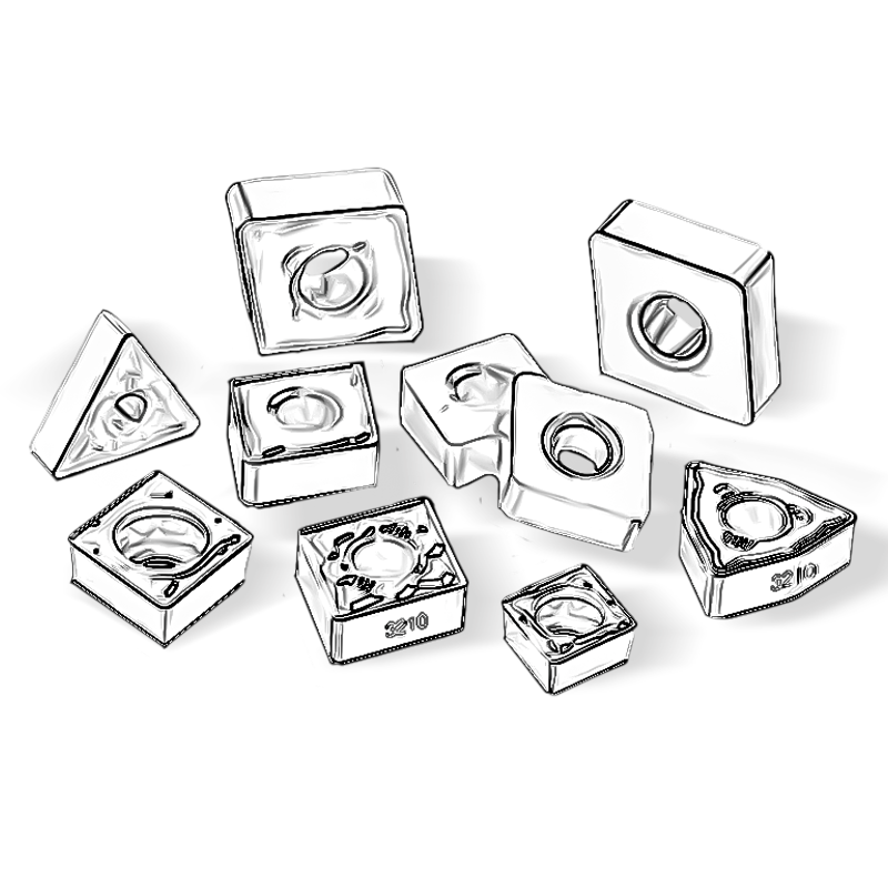 Сменные твердосплавные пластины изготавливаются из твердых металлов, обычно они имеют защитное покрытие. Подбираются таким образом, чтобы их твердость в 1.5 - 1.7 раз превышала твердость обрабатываемого материала.